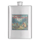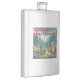 The product is a good size and came exactly as it was pictured. The lid is not attached to the flask, which could be dangerous on drunken nights... The print came out surprisingly well and looks very sharp. Would definitely recommend.