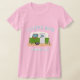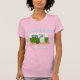 Little RV camper t-shirt with two lines of custom text. Curved text at the top is "Florida Keys" with "camping life" text beneath the design. A little green and white, retro RV is the design. Off-white lettering has aqua blue drop shadow to show on most colors. Shown on a pink tee with others to choose from. This shirt runs small, so order larger for a loose fit. Read more in the shirt description.