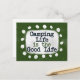 A fun camping themed typographic piece with the words "Camping Life Is The Good Life". It's green and white with black and green text and white whimsical dots surrounding the phrase.