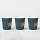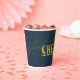 "Cheers" cup with midnight blue starry night sky design. Coordinates with our camping party collection.