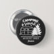 Family or friends camping reunion matching button featuring pines, stars, and trailer white silhouettes on a light blue background, with the caption Camping squad in white lettering. Easily customizable by adding your name and the reunion date.