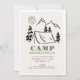 This cute camping theme bachelorette weekend/party invitation features hand-drawn illustrations of the tent, mountains, trees and sun. The reverse side features a khaki green background with tree patterns. Personalize it for your needs. You can find matching products at my store.