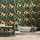 Retro tents and teepees vintage nature colors blue, orange and tan. Cool stick and peel wallpaper for those that love camping.