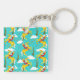 Show off your inner cowgirl with this personalized keychain and it's fun retro style wild west scene featuring a brightly colored cowgirl on a horse set in a western landscape. The front of the keychain is ready to be personalized with your custom text in bold red lettering.