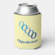 Blue name and initials. Personalize by changing to your Last name (surname) and initial (monogram). Name shows in dark blue. Initial is in five shades of blue, from light to dark, staggered, front to back. Background may also be customized (defaults to light yellow).