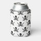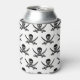 This can cooler is shown in a solid color of white with a pirate skull print design.