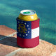 Keep your beverages cool with a touch of Peach State pride using our can cooler featuring the flag of Georgia!
