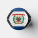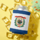 This can cooler pays tribute to West Virginia's rich cultural heritage and unique identity, featuring elements reminiscent of its iconic flag. The design prominently displays a white field with a blue border, encircling the coat of arms of West Virginia. The coat of arms includes a boulder inscribed with the state motto "Montani Semper Liberi" (Mountaineers Are Always Free), a farmer and a miner representing the state's agriculture and mining industries, and two rifles crossed to signify its historical struggle for independence.
