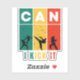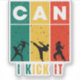 A vibrant retro-inspired t-shirt design featuring bold, funky typography with the phrase "Can I Kick It?" layered over dynamic geometric patterns in bright, nostalgic colors.