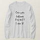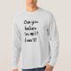 How about this cool light gray color long-sleeved t-shirt that says ' Can you believe I'm 90?? I can't!' written in black cursive letters.