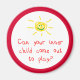 Share a little humor with this funny magnet that says "Can your inner child come out to play" with a fun smiling sun and crayon writing.