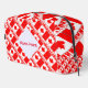 Personalized dopp kit, cosmetics bag, or toiletry bag featuring the red and white Canadian Flag with the word CANADA underneath, in the colors of the flag. Design is tiled for an artistic effect. A white space of squiggly squares holds a spot for your name to add a personalized touch. If you wish to give this as a customized gift, simply add someone else's name. Great for clubs, travel groups, and family reunion. Cool for celebrating Canada Day.
