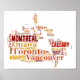 Word art poster print features Canadian map outline and names of top Canadian cities