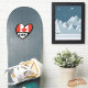 A cool, cartoon style heart design with the flag and the 3 letter country code of the country.