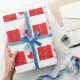 Patriotic CANADIAN wrapping paper showing a combined design of the map outline and flag of CANADA in a tiled pattern. Ideal for CANADA DAY celebrations, Birthdays and Christmas.and for any occasion throughout the year.