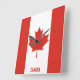 Canada Flag Dazzling Patriotic Square Wall Clock in the colors and the elements of the Canada national flag covering the front of the clock. National flag colors are complemented with the text "Canada" on the bottom. Text is fully customizable using "Customize it!" feature. Feel free to change it, remove it or add your own. This charming design is the stunning gift and the great show piece on the wall. © CountriesOfTheWorld