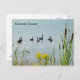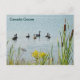 A digital painting of Canada Geese (Branta canadensis) swimming with cattails (Typha latifolia) and other vegetation in the foreground. Customizable text reading "Canada Goose" also appears.