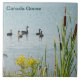 A digital painting of Canada Geese (Branta canadensis) swimming with cattails (Typha latifolia) and other vegetation in the foreground. Customizable text reading "Canada Goose" also appears.
