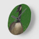 Let this friendly up close Canada goose tell you the time with this high quality wall clock. The goose is against a green textured background.
