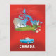Canada map illustrated travel poster featuring a map and a classic blue car.