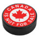 Canada is not for sale custom text and Canadian flag red maple leaf patriotic political protest hockey puck.