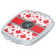 Deconstructed Canada flag featuring red Canadian maple leafs placed at random around a stunning black and red monogram button studded with diamonds. Great contrasting colors and intricate design. All images and artwork ©allmonograms store.