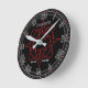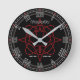 A historic Atomic Age themed calligraphic red maple leaf design with interlaced vector outlines. It is encircled by Roman numerals accented by red triangular hour marks. All of which is set against a black background ringed by a softly gradated white vignette and captioned with Canada Since 1867 Depuis 1867. An enticing mix of classic, modern and futuristic motifs.