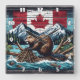 Canadian Beaver by the Flag and Mountains Square Wall Clock