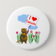Pin with my design of pretty flowers and a cute little beaver holding a sign that says "I love Canada" with a red heart.