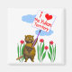 Magnet with my artwork of a beaver standing in front of flowers and holding a sign that says "I heart the Yukon Territory".