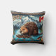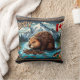 Canadian Beaver Nesting by Mountain River Throw Pillow