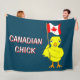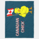 Canadian Chick text with a cute yellow chick waviung the Canadian Flag.