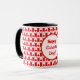 Cute Canadian Flag Hearts Maple Leaf Pattern Happy Canada Day Typography Souvenir Coffee Ringer Mug, you can change the text and add your name