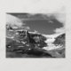 This black and white image is of a Canadian mountain topped by a layer of ice.
