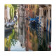 A colorful, venetian canal in Italy. The blues,greens, oranges and yellows of the surrounding boats, buildings and plants in Venice are reflected in the canal water. This ceramic tile is fully customizable.