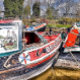 An art design of old moored narrowboats on the canal waiting for restoration.
