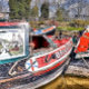 An art design of old moored narrowboats on the canal waiting for restoration.