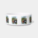 This is a heavy, durable bowl decorated with Tibbies of many colors, the perfect size for hungry/thirsty Tibs. The design is interesting and printing clear.