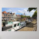 View of the Klein Diep canal and waterside buildings from the Vleesmarkt in Dokkum in Friesland in the Netherlands.