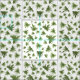 An artwork of original pressed canary leaves presented in their natural green color.