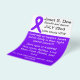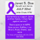 Cancer benefit flyer featuring purple ribbon which is the general purpose color for cancer awareness.