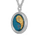 I chose gold plated so that the metal would not react with my skin oils and perspiration. But, I changed the necklace from the gold plated one to a sterling silver. My skin cells will tarnish the silver. But it will not look as bad if some portion of the gold plated necklace somehow became compromised. Zazzle did a find job turning the picture into a pendant for me. As you can see, the colors and the printing of the final product, match the preview. The picture I took is not very clear. But I am pleased with the product I received.
