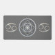 This mandala was designed for the zodiac sign, Cancer, depicting a moonstone in the center surrounded by elements representing the sign, such as the symbol for the sign, the constellation, and the alchemical symbol for Water, as well as filigree vines and weaves wrapping it all into a solid image in shades of pearly white-blue, silver, and gray.