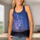 Our Cancer birth sign allover print tank top is perfect for anyone inspired by astrology and new age mysticism. With a beautiful dark starry sky backdrop the constellation of Cancer sits above the text and zodiac symbol. The horoscope text can be easily personalized and all elements can be resized, recolored or moved around - just tap to customize further.