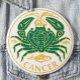 Cancer - Star Sign of the Zodiac on a bag. Green, yellow and white design. Wear it like a brooch or fashion accessory.