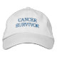 White embroidered hat reads "Cancer Survivor" in blue letters.