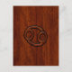 Cancer Zodiac Symbol on Mahogany Wood Style Postcard