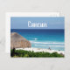 Cancun beach postcard with a view of the sea waves crashing onto the white sand beach.