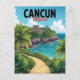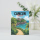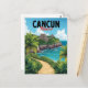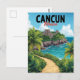 This vintage-style travel postcard captures the stunning blend of ancient history and natural beauty found in Cancún, Mexico. Featuring a beautiful illustration of an ancient Mayan pyramid ruin, reminiscent of El Castillo at Chichén Itzá, set high on a tropical cliff overlooking the turquoise waters of the Caribbean Sea. A winding path through lush green foliage leads to this breathtaking view. Perfect for travel lovers, history enthusiasts, or as a unique vacation souvenir. A great way to send greetings from the Yucatán Peninsula.
