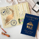 Have fun with your Wedding Save the Date or Wedding Invitation! Perfect for a destination wedding. Beach Hut and Chairs in a FAUX Gold Foil with Navy Blue background and inside. Inside moveable heart to place over wedding location. Palm Trees and Cancun Mexico map on the inside with fun Passport Stamps. For inquiries about custom design changes by the independent designer please email paula@labellarue.com BEFORE you customize or place an order.